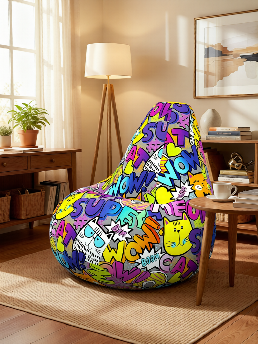 Размер чехла XXL (125x85x75) – Бюджетный,но в тоже время универсальный размер,который подойдет детям, подросткам, так и возрослым ростом до 170 см. и весом до 90кг.В рабочем положении высота посадочного места около 35см и в диаметре 80см.Очень хорошо найдет свое место в небольших помещениях,квартирах.Готовое изделие состоит из внешнего и внутреннего чехла(на молнии),объем наполнителя состовляет 220литров.