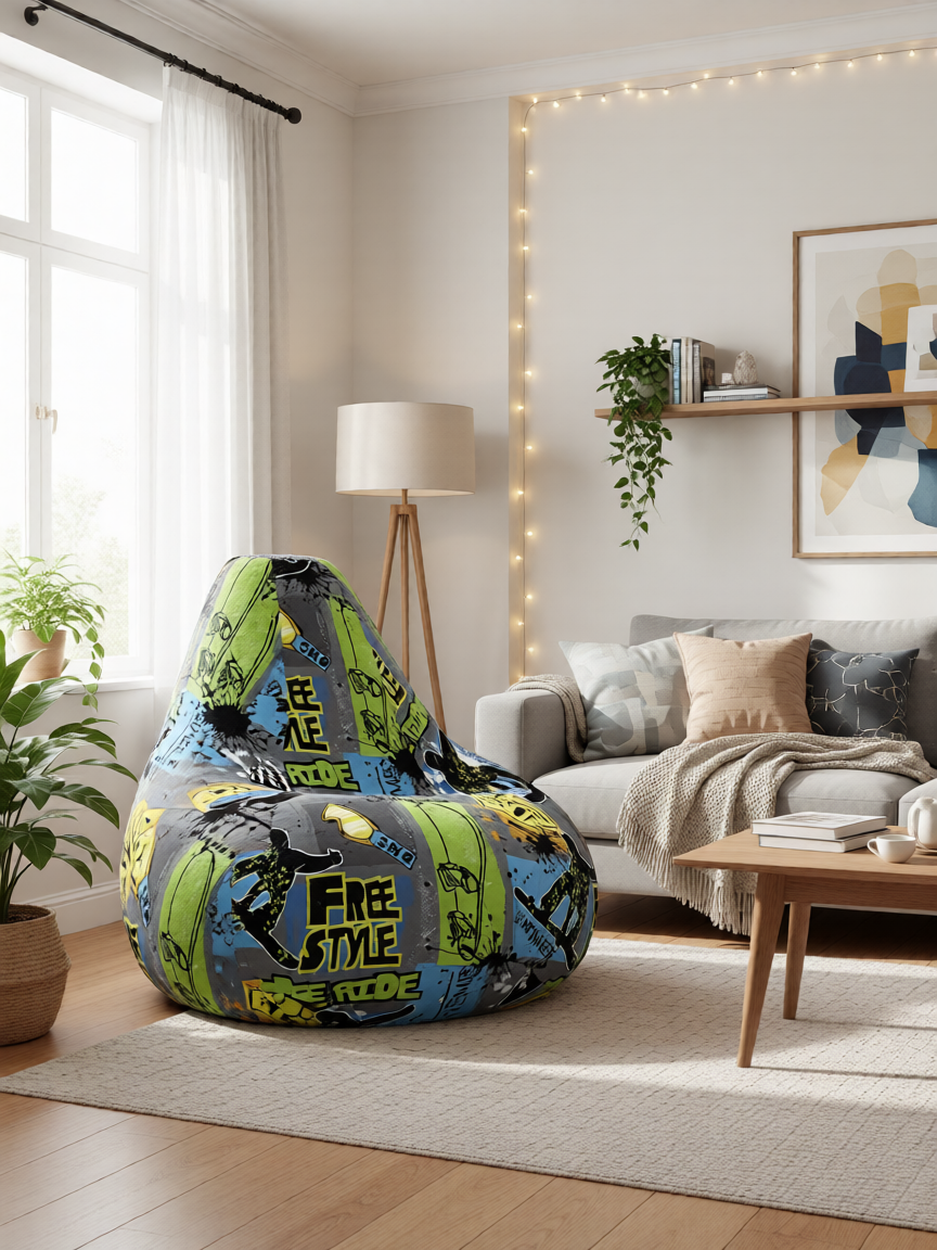 Размер чехла XXL (125x85x75) – Бюджетный,но в тоже время универсальный размер,который подойдет детям, подросткам, так и возрослым ростом до 170 см. и весом до 90кг.В рабочем положении высота посадочного места около 35см и в диаметре 80см.Очень хорошо найдет свое место в небольших помещениях,квартирах.Готовое изделие состоит из внешнего и внутреннего чехла(на молнии),объем наполнителя состовляет 220литров.