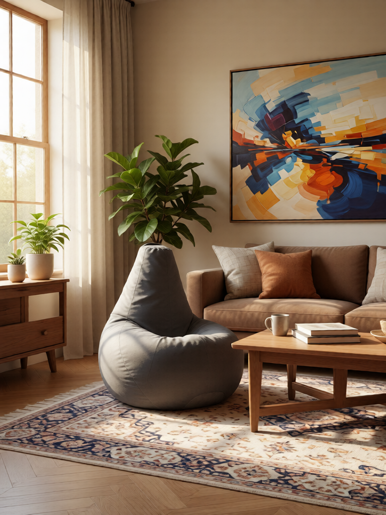 Размер чехла XXXL (90x100x135) – Самый оптимальный размер если выбирать между комфортом и ценой,найдет свое место как в помещении,так и на приусадебном участке.В восторге будут и дети и взрослые.Рекомендуем людям ростом от 170см до 185см и весом до 110кг.В рабочем положении высота посадочного места около 45см.и в диаметре 85см.Готовое изделие состоит из внешнего и внутреннего чехла(на молнии),объем наполнителя составляет 300 литров.